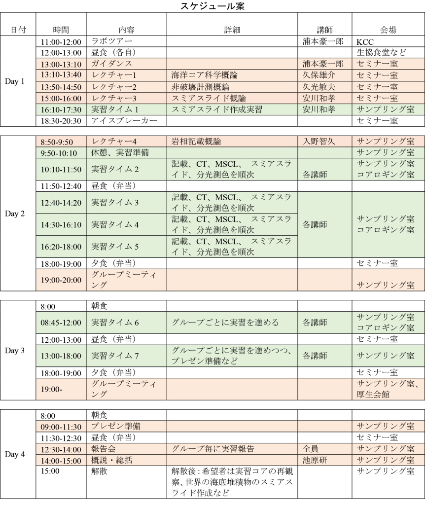 掘削科学においては、掘削船や研究船のコア解析現場で行われる基礎技術の理解と実践が不可欠となりますが、大学カリキュラムで体系的に技術指導を受ける機会はほぼありません。